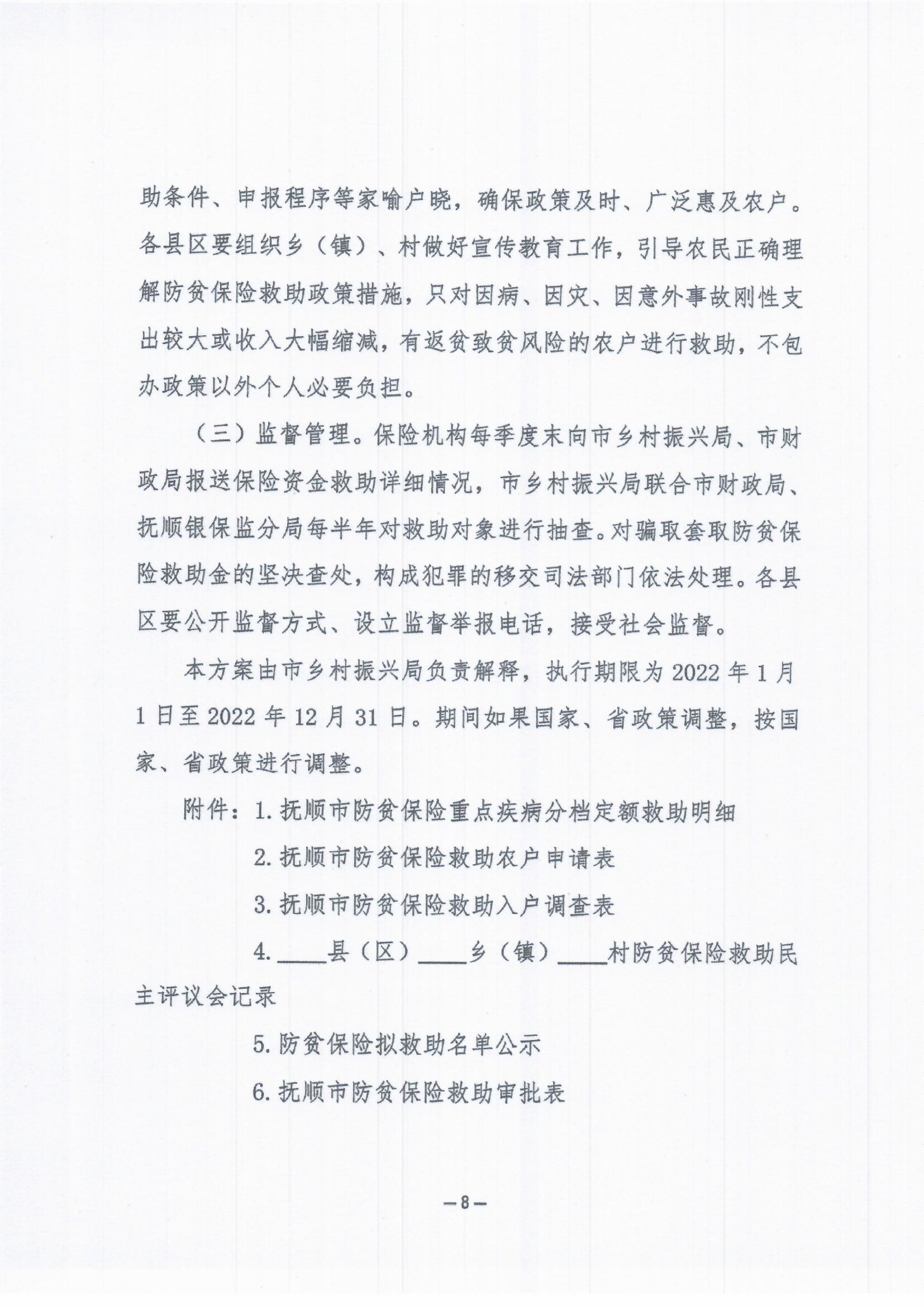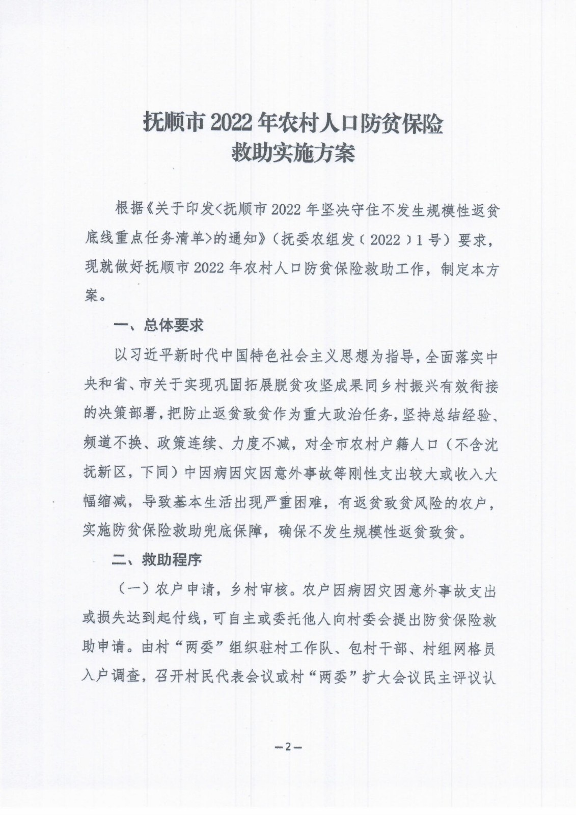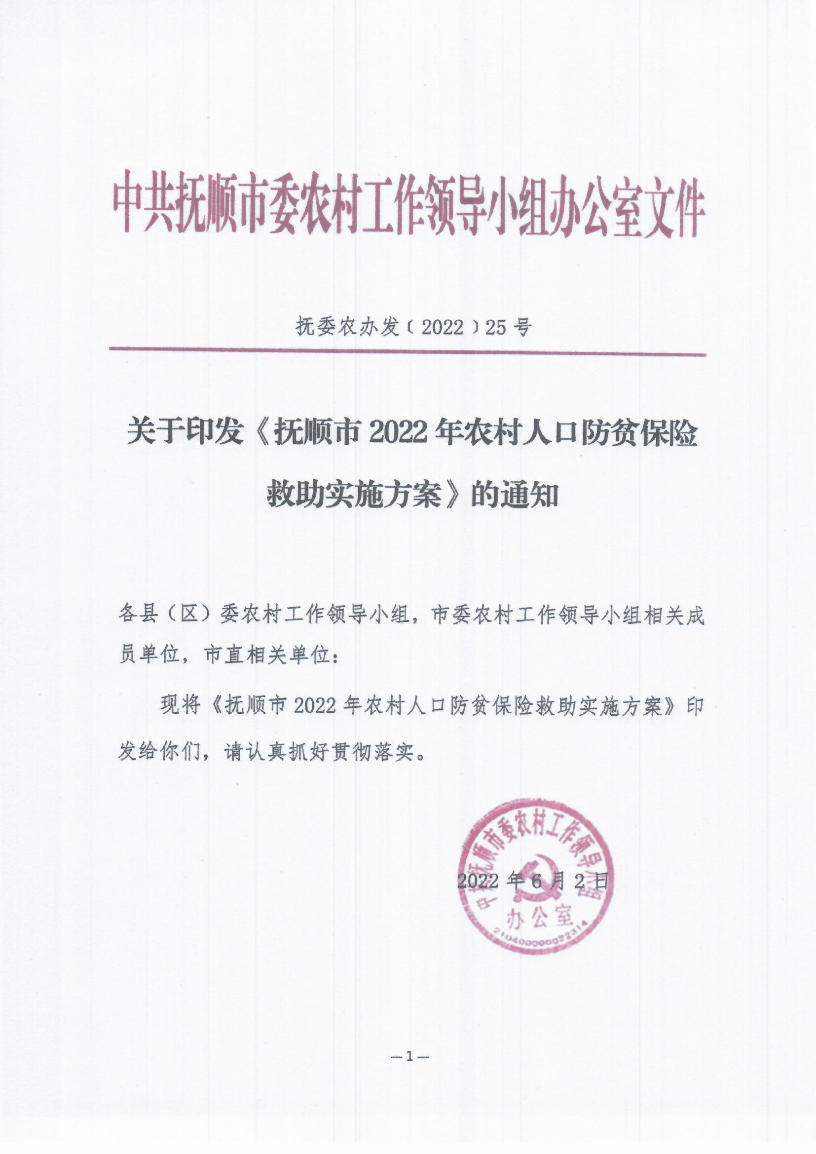 关于印发《抚顺市2022年农村人口防贫保险救助实施方案》的通知