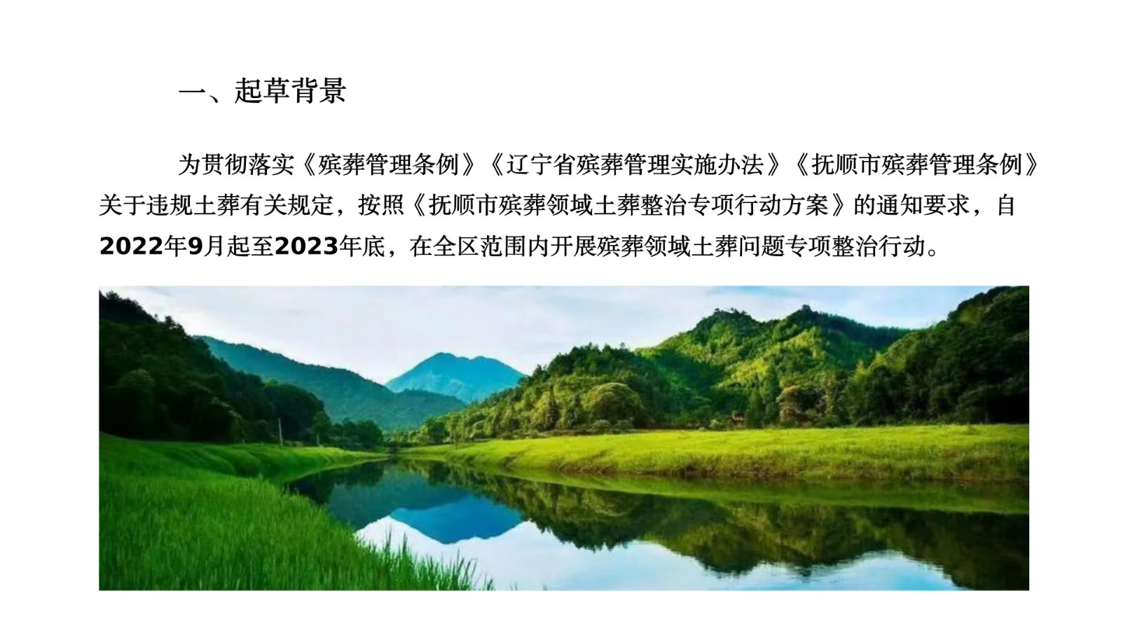 为贯彻落实《殡葬管理条例》《辽宁省殡葬管理实施办法》《抚顺市殡葬管理条例》关于违规土葬有关规定,按照《抚顺市殡葬领域土葬整治专项行动方案》的相关要求,自2022年9月起至2023年底,在全区范围内开展殡葬领域土葬问题专项整治行动。现就有关事项通知如下: