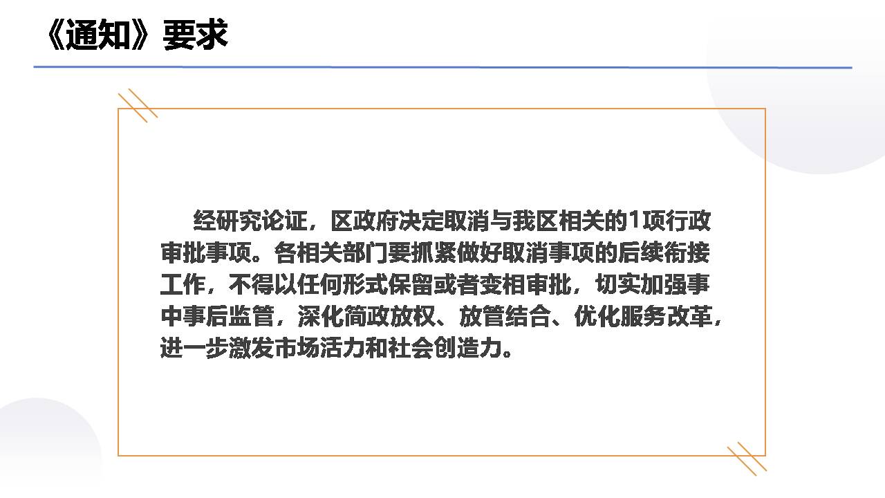 为认真贯彻落实《抚顺市人民政府关于落实国务院取消152项中央指定地方实施行政审批事项和取消13项国务院部门行政许可事项的通知》(抚政发〔2016〕20号),经研究论证,区政府决定取消与我区相关的1项行政审批事项。