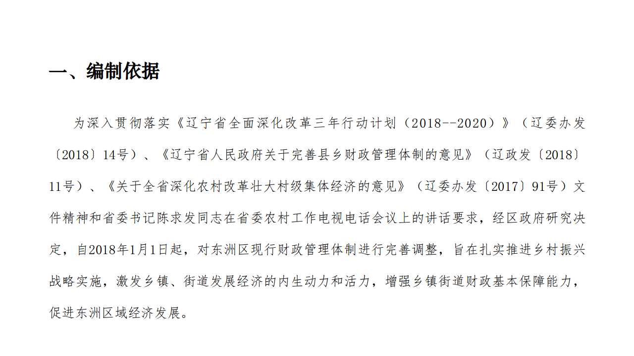 为深入贯彻落实《辽宁省全面深化改革三年行动计划(2018--2020)》(辽委办发〔2018〕14号)、《辽宁省人民政府关于完善县乡财政管理体制的意见》(辽政发〔2018〕11号)、《关于全省深化农村改革壮大村级集体经济的意见》(辽委办发〔2017〕91号)文件精神和省委书记陈求发同志在省委农村工作电视电话会议上的讲话要求,经区政府研究决定,自2018年1月1日起,对365bet足球网站_365被限制投注的原因_正规的365网站平台现行财政管理体制进行完善调整,旨在扎实推进乡村振兴战略实施,激发乡镇、街道发展经济的内生动力和活力,增强乡镇街道财政基本保障能力,促进365bet足球网站_365被限制投注的原因_正规的365网站平台域经济发展。