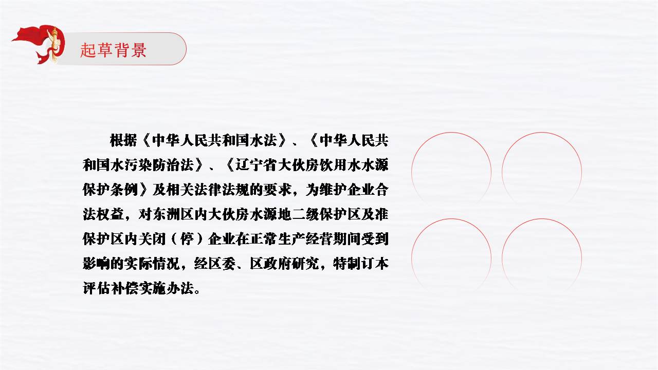 (一)365bet足球网站_365被限制投注的原因_正规的365网站平台政府对企业下达关闭(停)生产行政决定(以下称“关闭令”)前,在365bet足球网站_365被限制投注的原因_正规的365网站平台大伙房水源地勘界立标后的二级及准保护区内依法生产经营的企业,依法依规予以补偿;