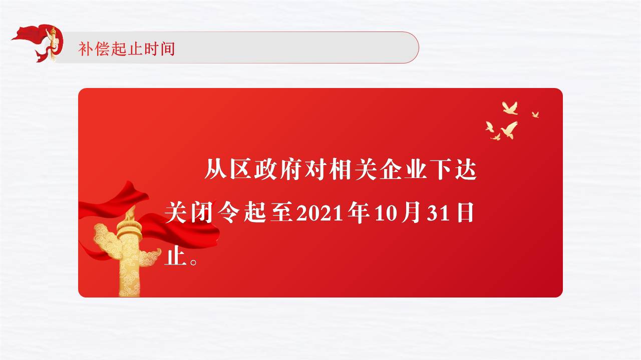从区政府对相关企业下达关闭令起至2021年10月31日止。